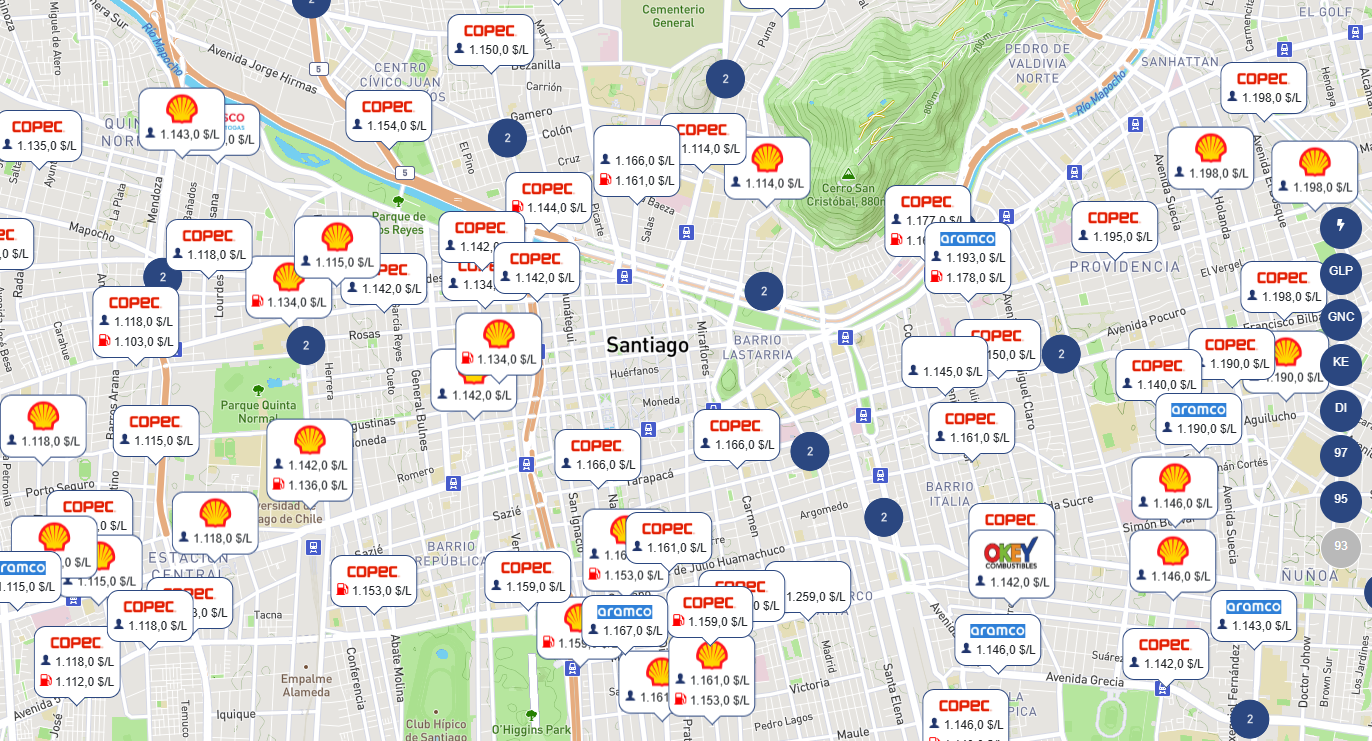 Ahí, los usuarios pueden buscar por comuna, región, marca y servicio, y encontrar el lugar más barato para comprar combustible. Así, los cibernautas podrán comparar el precio por litro de combustible y el gas licuado.