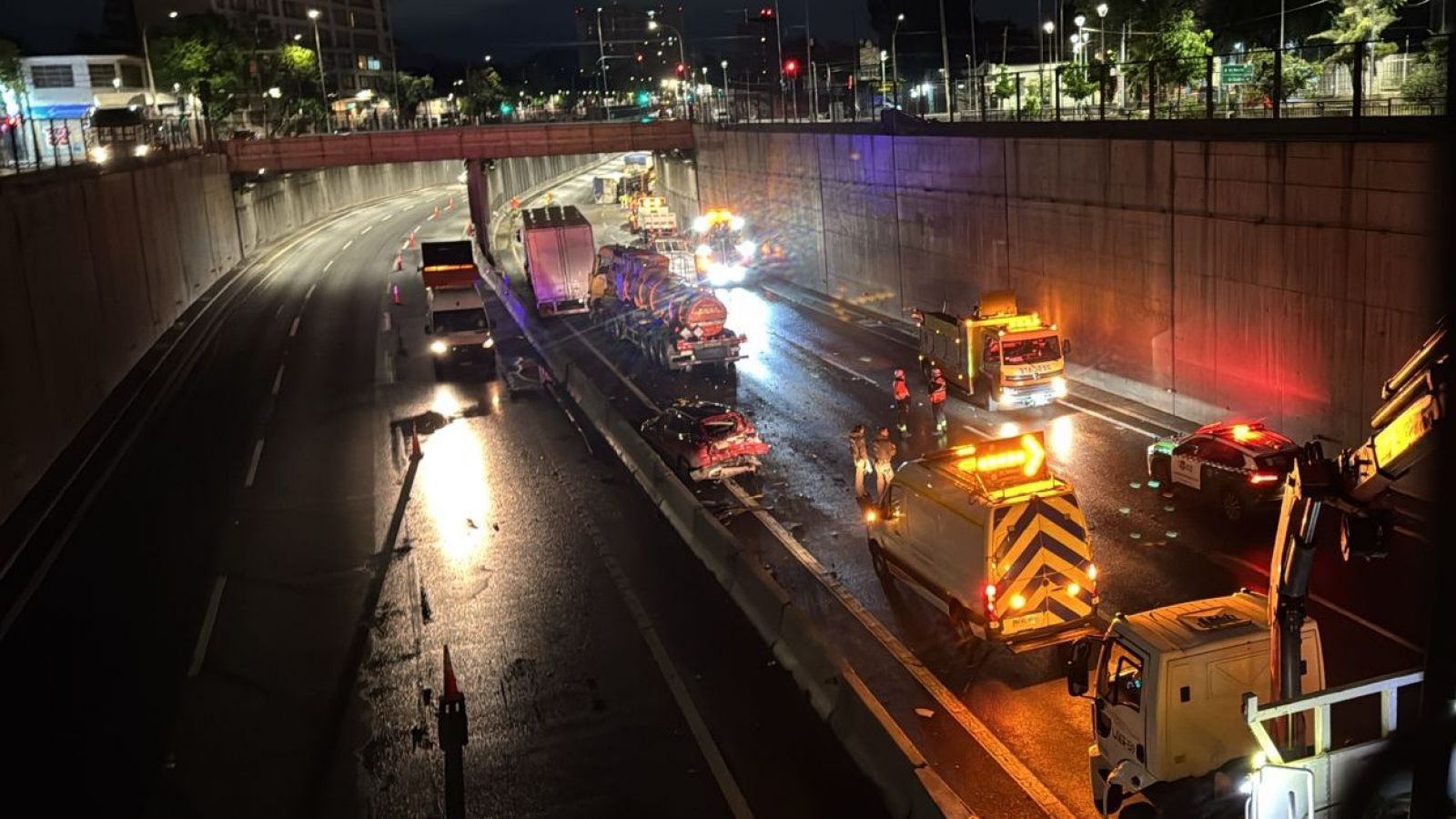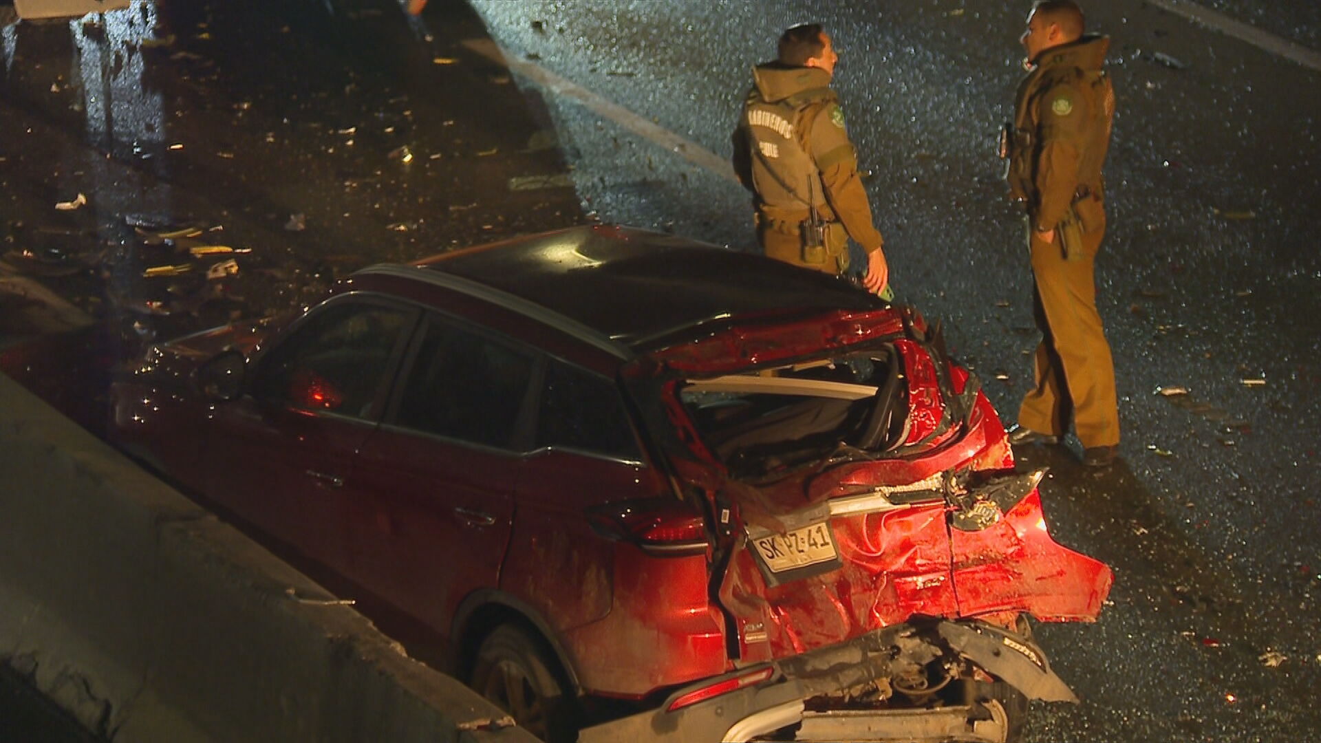 Según información preliminar, el hecho ocurrió cerca de las 23:00 horas por General Velásquez con San Pablo hacia el norte, cuando se produjo el impacto entre los vehículos debido a que un camión botó gravilla por la autopista.