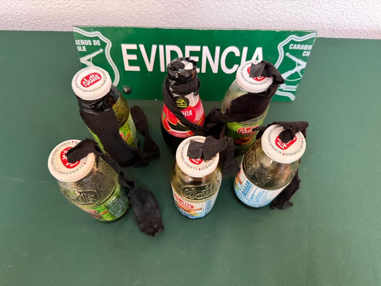 A causa de lo anterior, Carabineros realizaron un despliegue preventivo hasta el recinto educacional. Al interior del establecimiento, se descubrieron seis botellas de vidrio preparadas con líquido acelerante, las cuales estaban escondidas en el baño.