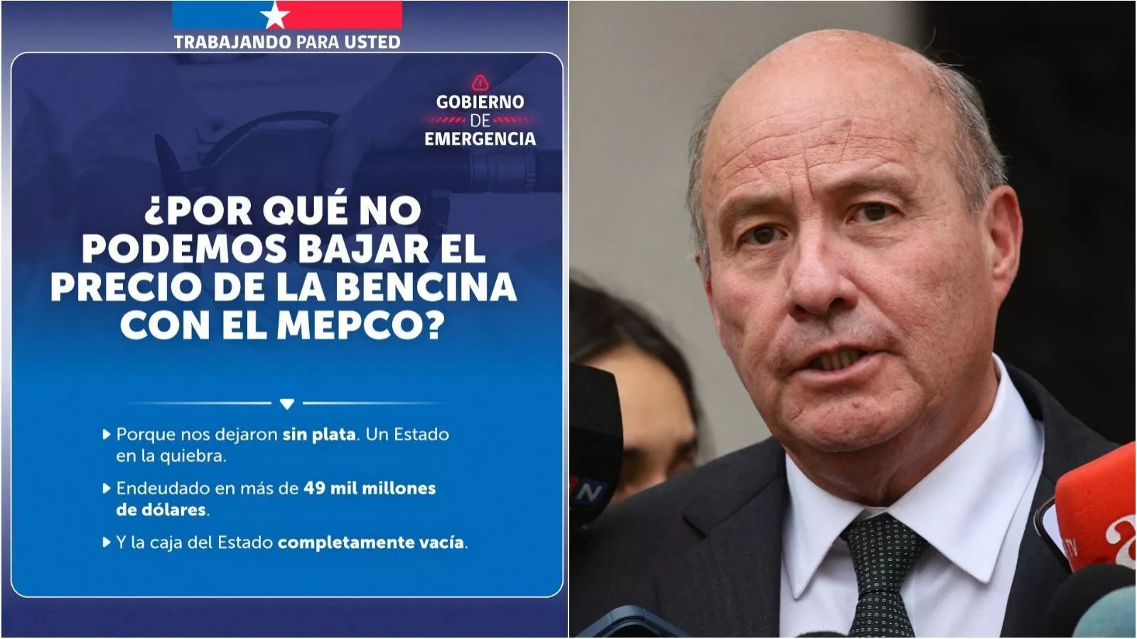 "¿Por qué no podemos bajar el precio de la bencina con el Mepco? Porque nos dejaron sin plata. Un Estado en la quiebra", decía la publicación que fue borrada en menos de 24 horas.