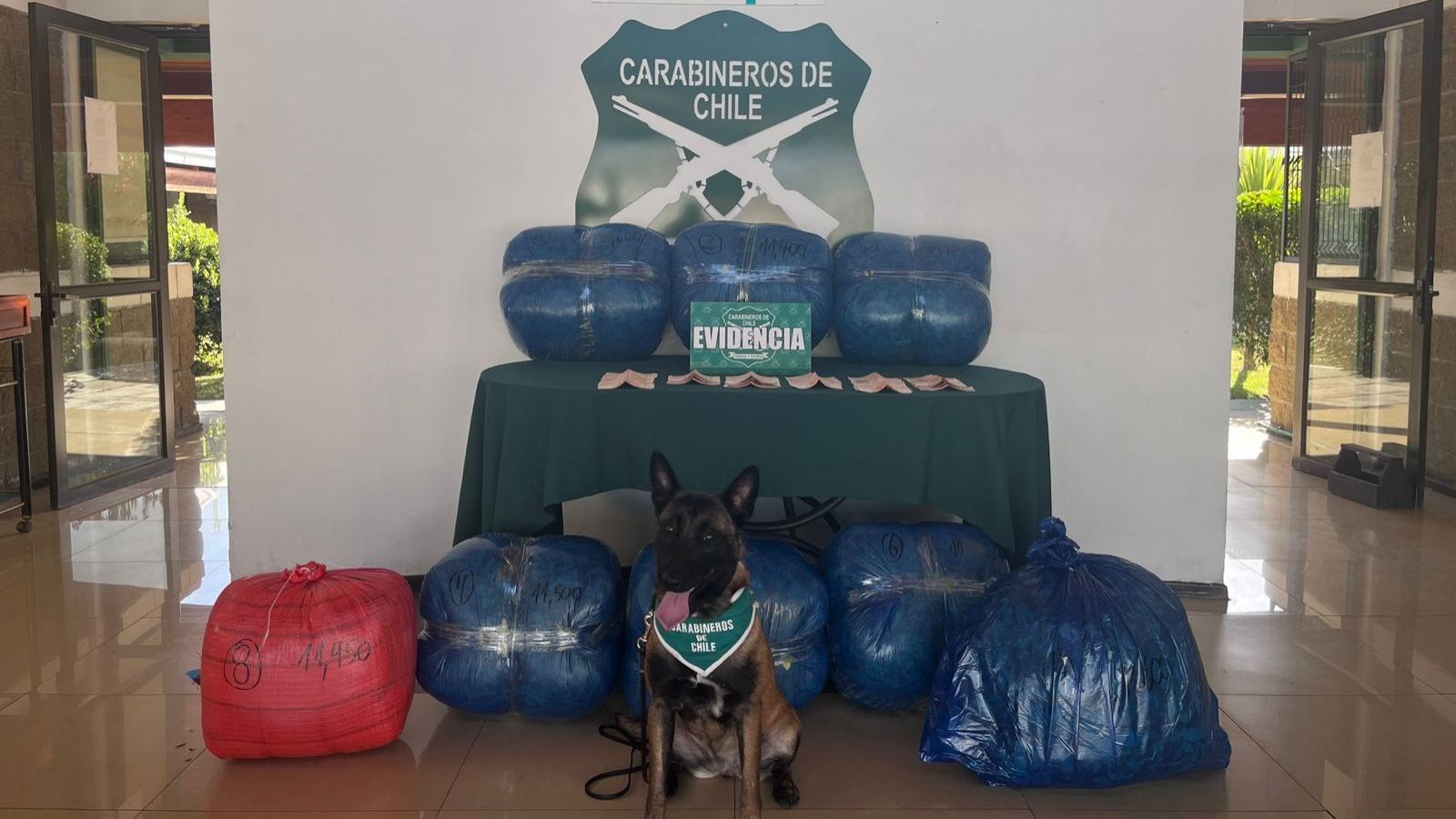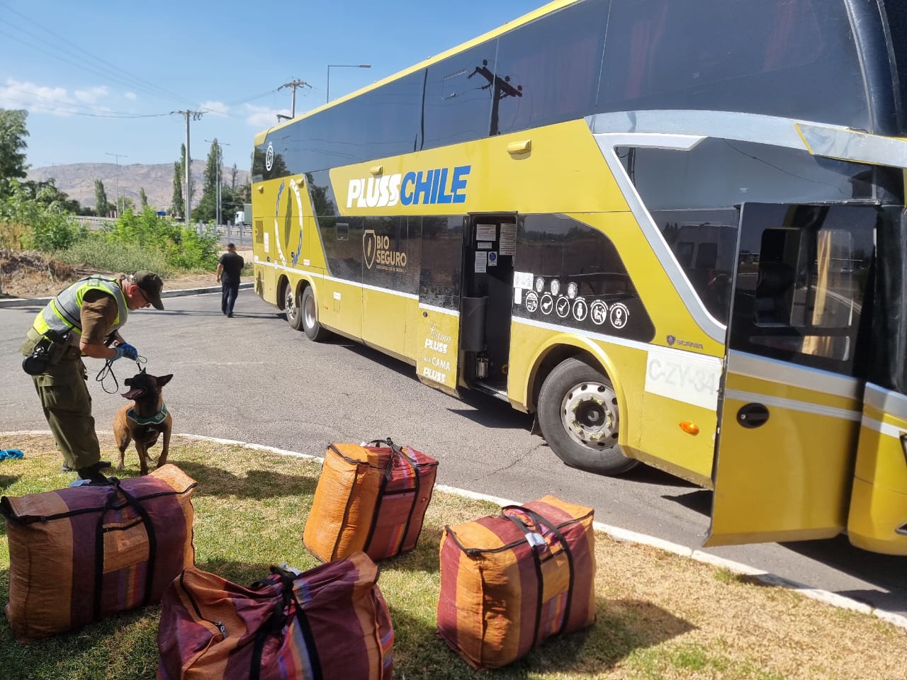 Carabineros detuvo este martes a una mujer de 24 años, quien transportaba 91,9 kilos de hoja de coca distribuidos en ocho paquetes. El hallazgo se produjo a la altura de Lampa debido al actuar del can "Can Kopec", quien identificó la droga oculta al interior del maletero del bus.