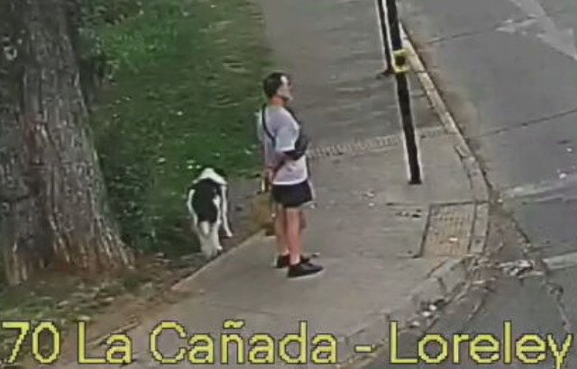 Jorge Ugalde paseando su perro y con una bolsa, donde llevaría el arma homicida