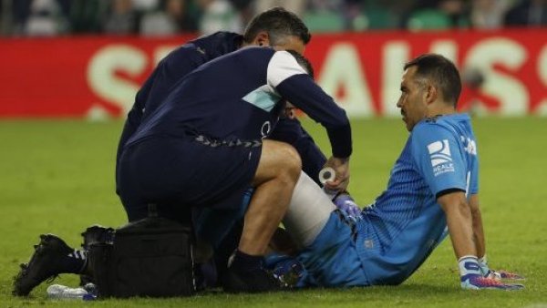¿Y Claudio Bravo? La imagen que provoca preocupación en Real Betis El chileno sintió una molestia muscular en la victoria por Europa League y es duda para el derbi de Andalucía.
