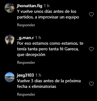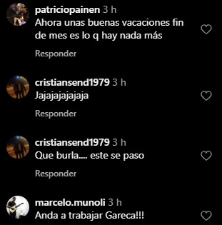 "Se fue de vacaciones de nuevo", "no va ver los partidos de campeonato, no ve jugadores...es el colmo", "seguro mira todos los partidos del campeonato x TV" y "vuelve unos días antes de los partidos, a improvisar un equipo", fueron algunos de los comentarios que surgieron.