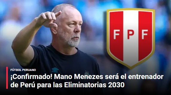 "¡Confirmado! Mano Menezes es el nuevo entrenador de la selección peruana para las Eliminatorias 2030", anunció el medio deportivo Líbero, asegurando que la federación hará prontamente el anuncio oficial.