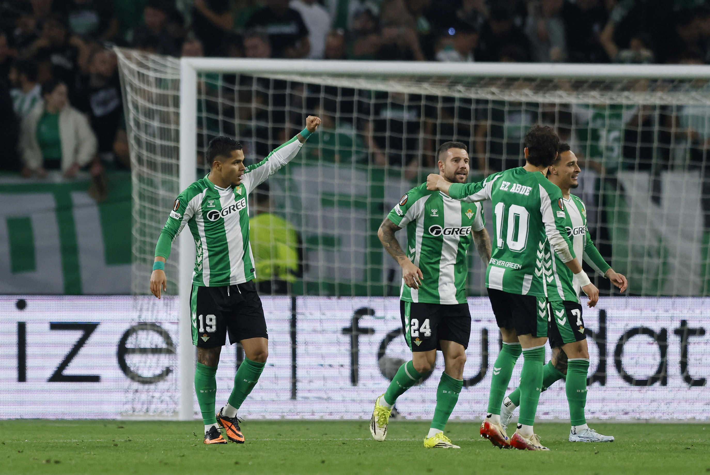 Real Betis de Manuel Pellegrini goleó 4-0 al Panathinaikos griego en Andalucía y por primera vez se instaló en los cuartos de final del torneo continenta, instancia en la cual se medira ante Sporting Braga de Portugal que dejó en el camino al Ferencváros húngaro.