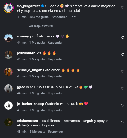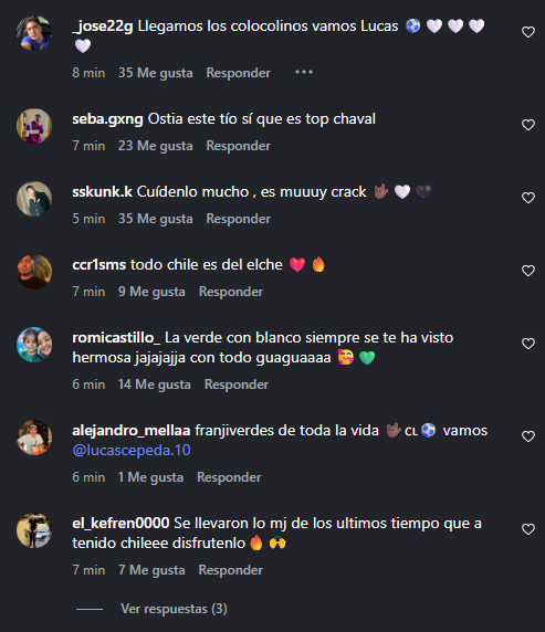 La publicación de Elche generó una ola de comentarios por parte de los hinchas de Colo Colo, quienes dejaron varios mensajes de afecto y cariño para Lucas Cepeda.