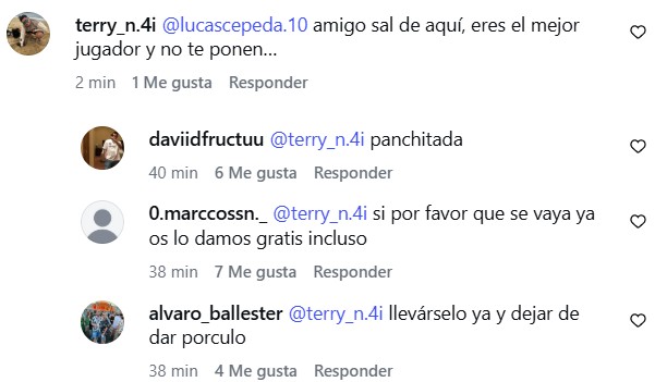 Los comentarios de los hinchas sobre Lucas Cepeda