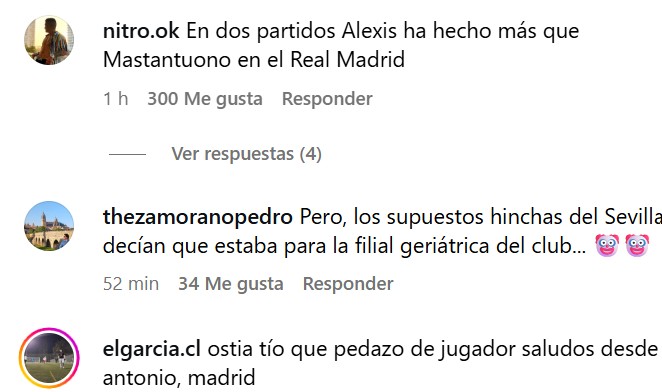 El gol del atacante nacional causó sensación entre los hinchas, quienes se volcaron a la cuenta de Instagram del Sevilla, repletando la cuenta de la red social de mensajes y elogios para el jugador.