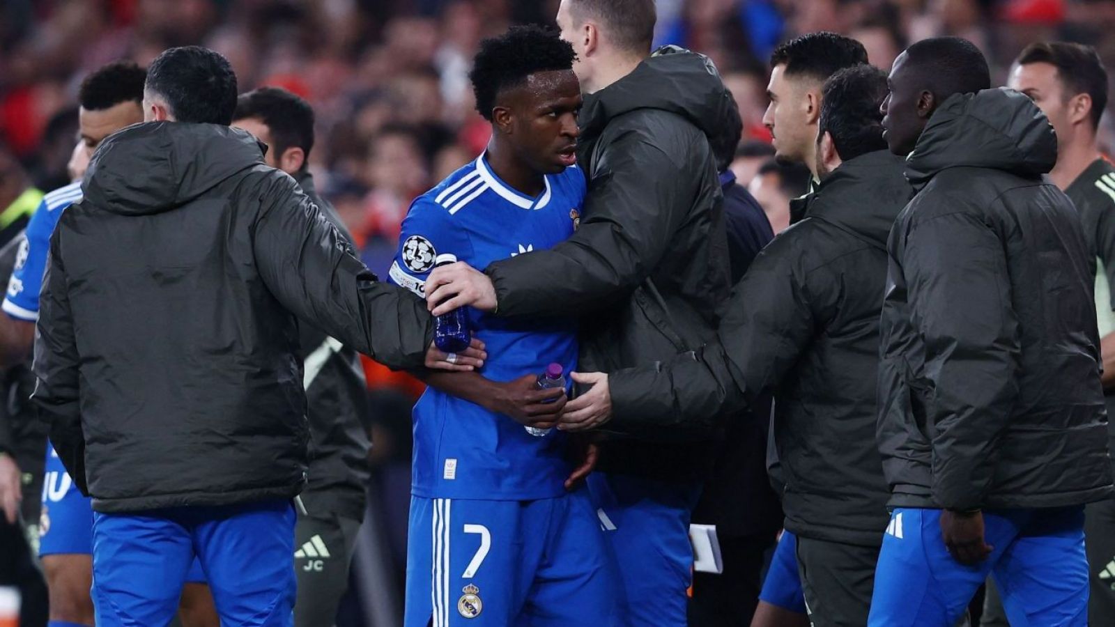 Asimismo, integrantes de los banquillos tuvieron una fuerte discusión mientras Vini estaba sentado a modo de protesta por lo ocurrido.