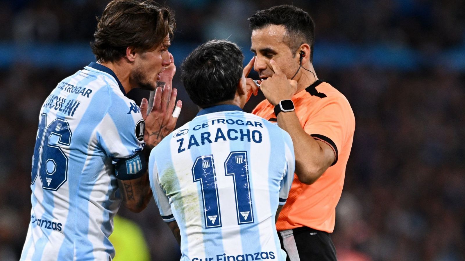 Maza también causó polémica durante el encuentro por dos supuestos penales no cobrados en favor de Racing.