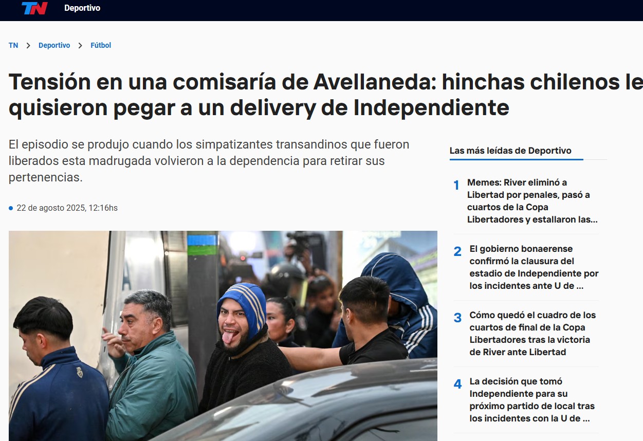 A su vez, el medio TN tituló: "Tensión en una comisaría de Avellaneda: hinchas chilenos le quisieron pegar a un delivery de Independiente".