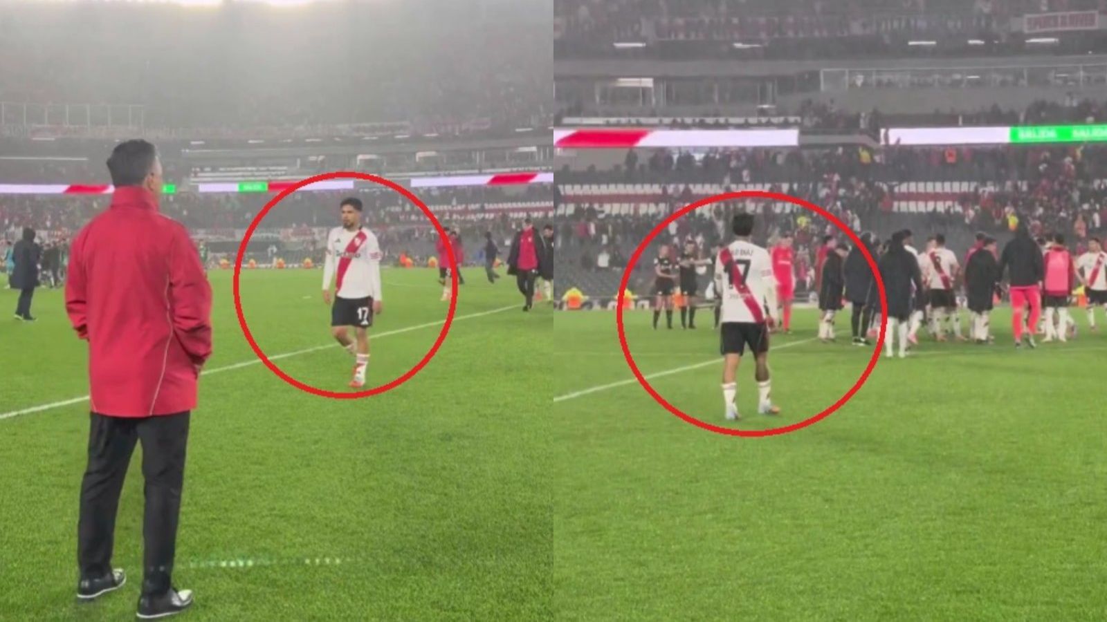 ¿Qué ocurrió? Tras el pitazo final, el clima en las tribunas estaba caldeado y las pifias e insultos llovían. En ese momento, el plantel "millonario" se reunió en la mitad de la cancha para saludar y despedirse de los molestos fanáticos. Todos menos uno. Y es que Díaz no concurrió hasta donde estaban sus compañeros y quiso irse antes.