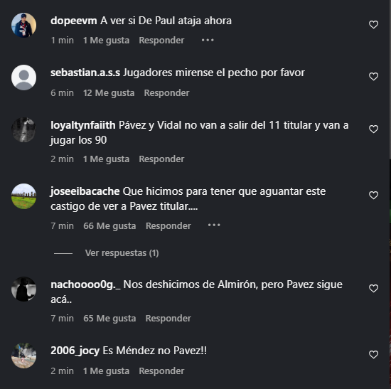 Tras el anuncio, la publicación alba se llenó de comentarios como "Y dale con Costa y Gil", "Ahora Pavez volverá a ser el regalón", "Chao Pavez porfavor", "Que hicimos para tener que aguantar este castigo de ver a Pavez titular...."