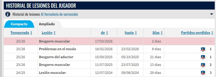 En el mejor de los casos, el cordobés volvería el 26 de abril contra Universidad de Concepción y desde su llegada a Macul, ha tenido cinco dolencias musculares de acuerdo a los datos de Transfermarkt.