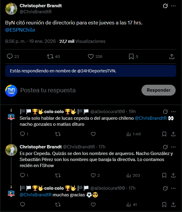 El mencionado comunicador manifestó que Lautaro Pastrán es una de las alternativas que asomó por Macul en caso que Lucas Cepeda dé el salto a LaLiga. "Habrá que ver si avanza", puntualizó.