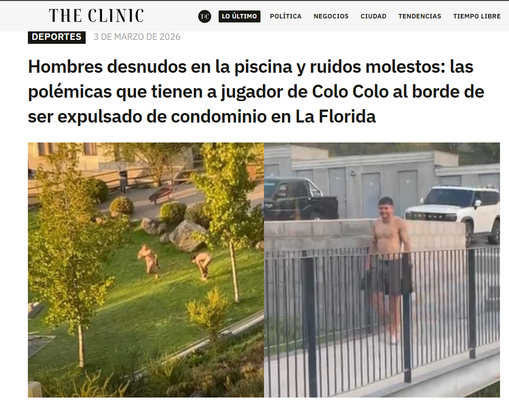 Las acusaciones apuntan a que dos personas que acompañaban al futbolista se habrían bañado desnudas en la piscina del recinto, ante la vista de otros residentes. Además, vecinos señalaron que anteriormente ya existían reclamos por “ruidos molestos”.