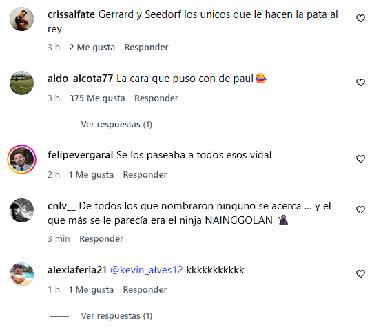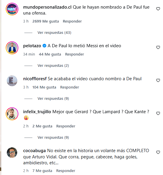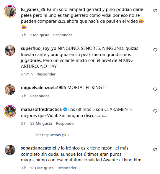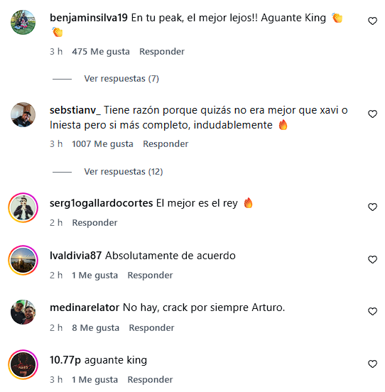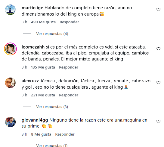 Rápidamente la publicación se llenó de respuestas de fanáticos chilenos dándole la razón al 'King', mientras otros aseguraban que no era más completo que algunas de las leyendas mencionadas.