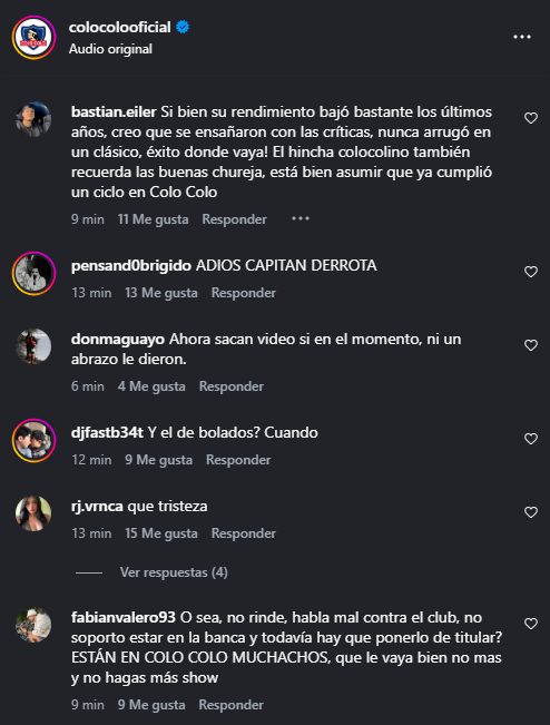 "Cumplí mi sueño de ser capitán de Colo Colo, ser campeón y eso no lo puede decir cualquiera. Me voy con la frente en alto, di todo", expresó el mediocampista, quien sintetizó que "muchos están contentos porque me voy, pero el colocolino que realmente ama al club, sabe que lo di todo. Hay muchos que están tristes y dolidos por cómo me fui".