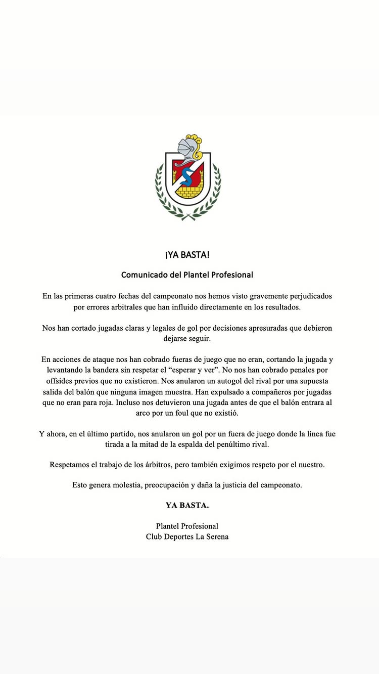 En paralelo, el Club Deportes La Serena publicó un comunicado oficial respaldando a sus jugadores y elevando el tono de la denuncia.