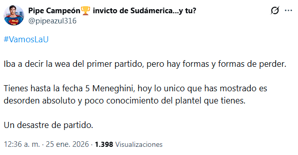 La Universidad de Chile se estrenó en el 2026 recibiendo una goleada de parte de Universitario durante la noche de este domingo y se llenó de dudas a una semana de que inicie la Liga de Primera.