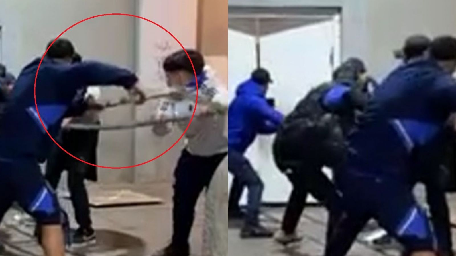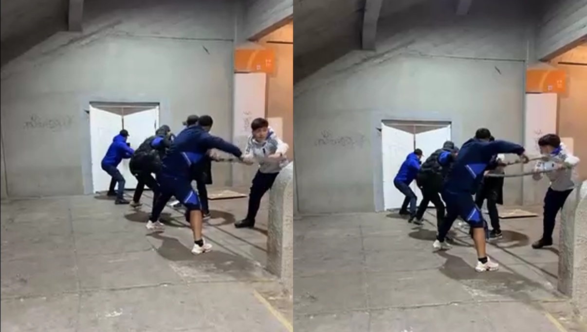 En los registros difundidos por CNN Chile, un grupo de fanáticos fueron captadas forzando con un objeto contundente una puerta de acceso para trasladarse desde el sector Andes hacia la Galería.