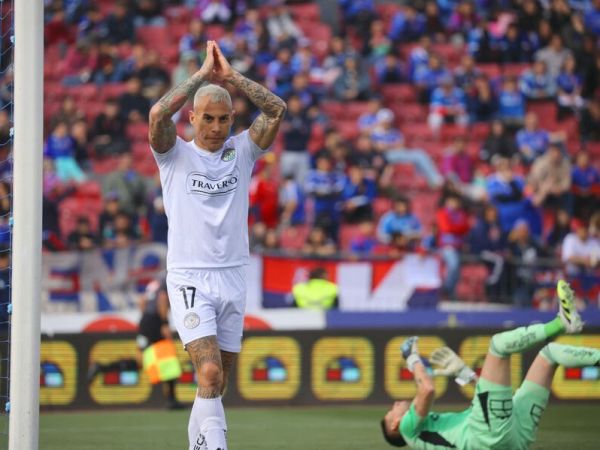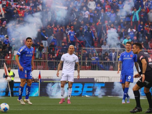 Durante el primer tiempo del partido ante Audax Italiano, barristas hicieron estallar bombas de estruendo, muy cerca del arco del portero Gabriel Castellón.