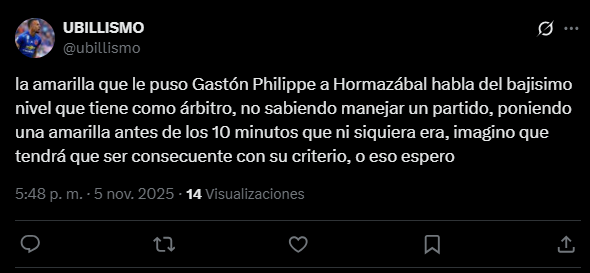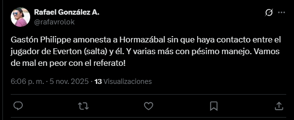 Más allá del empate transitorio, el árbitro Gastón Phillippe se convirtió en el apuntado de los hinchas con varios comentarios que cuestionaban su capacidad de dirección y la diferencia de criterios al momento de los cobros.