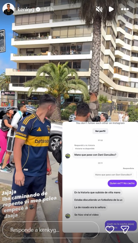 La pelea de Daniel González en Viña del Mar. En el registro del cantante urbano Kenky G, se aprecia el intercambio del central de la UC con otro transeúnte. pic.twitter.com/bgFLG7QbSf