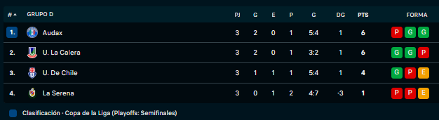 Universidad de Chile superó 3-1 a Audax Italiano por la tercera fecha de la fase grupal de la Copa de la Liga 2026 y recuperó terreno en la pelea por clasificar a las semifinales del nuevo torneo del fútbol chileno.