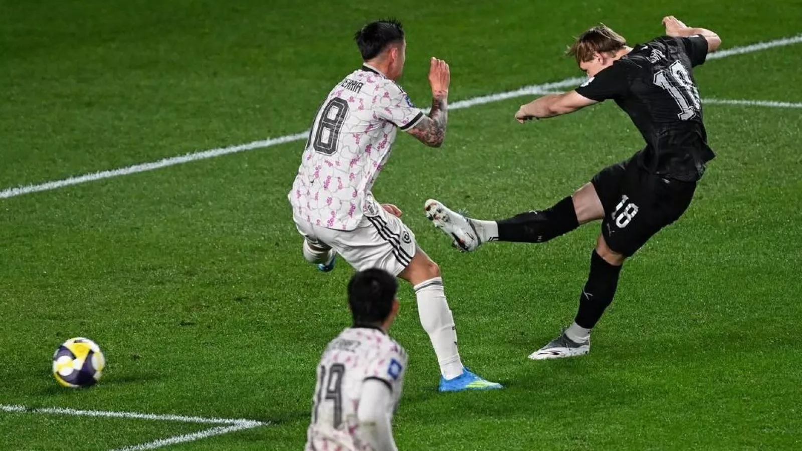 Sería a los 31 que finalmente los "All White" se pondrían en ventaja luego de que Kosta Barbarouses apareciera solo para abrir la cuenta tras un tiro de esquina.