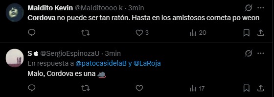 Sin embargo, y pese al triunfo, los hinchas no quedaron conformes con lo mostrado por el elenco nacional en cancha y apuntaron duras críticas contra el técnico Nicolás Córdova, a quien responsabilizaron del nivel del equipo.