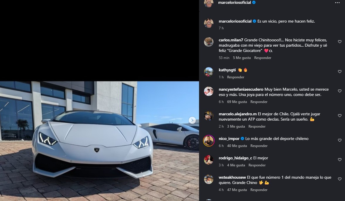 Marcelo Ríos nuevamente captó la atención de sus seguidores en redes sociales. En esta oportunidad, el exnúmero uno manifestó mediante su cuenta de Instagram su fanatismo por los autos de lujo.
