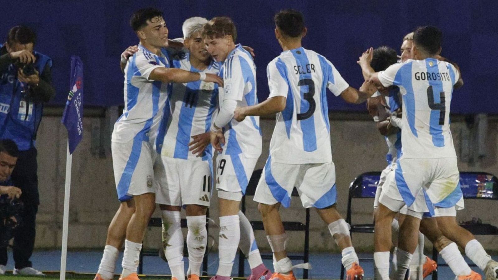 Alejo Sarco (3') y Tomás Pérez (45') adelantaron a la Albiceleste mientras que Daniel Bennie descontó e ilusionó a los oceánicos (69'), pero Ian Subiabre (90'+3') y Santino Andino (90'+5') cerraron la goleada.