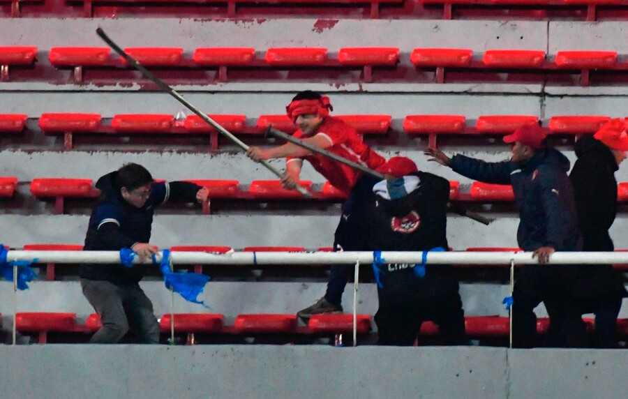 En primer lugar, el encuentro de vuelta entre Independiente y Universidad de Chile en Avellaneda —por los octavos de final de la Copa Sudamericana— terminó siendo cancelado debido a una batalla campal entre hinchas, con escenas de brutalidad que dieron la vuelta al continente. La Conmebol incluso resolvió descalificar al club argentino y sancionar duramente a la U, que avanzó en el torneo sin poder contar con público en 14 compromisos internacionales.