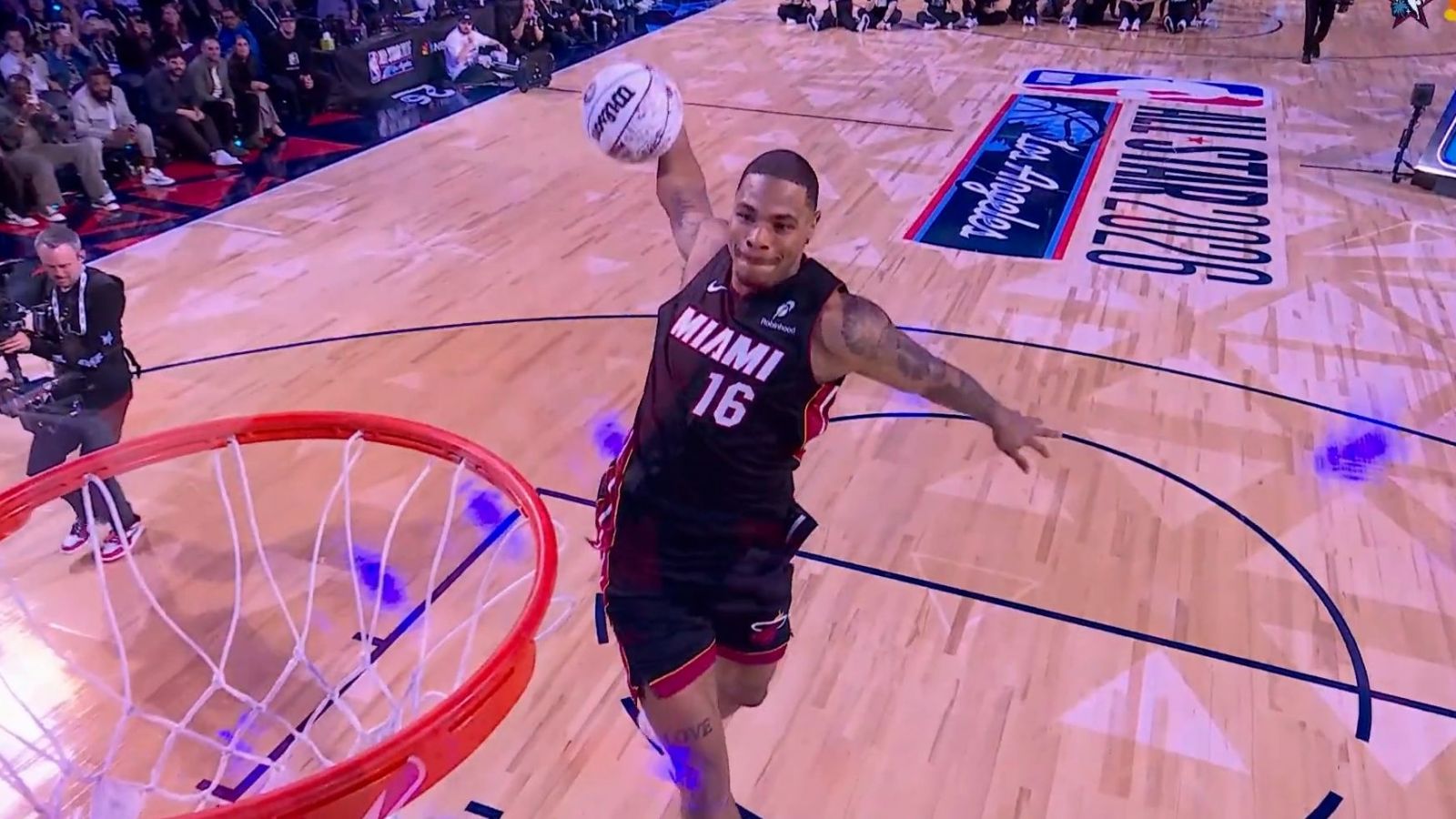 El alero de los Heat venía de realizar un mate en el que recogía la pelota para saltar y encestar con una mano, una jugada que le valió la media de 49,2 puntos.