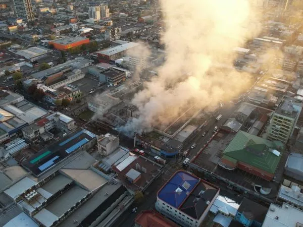 Los 15 locales del centro comercial Las Palmas en Concepción resultaron destruidos por un incendio que partió pasadas las 6 de la mañana, y que obligó al despliegue de voluntarios de bomberos de 5 comunas de la provincia, además de las unidades de escala telescópica de la zona. Las llamas se propagaron por el segundo piso de la estructura, adosada al antiguo recinto del Mercado Central, por el costado de calle Rengo, y obligaron a la evacuación de las 4 personas que se encontraban al interior. El Ministerio Público confirmó que existe una pareja, que dormía al interior, que tienen la calidad de "sujetos de interés" en la investigación sobre las causas del fuego.
