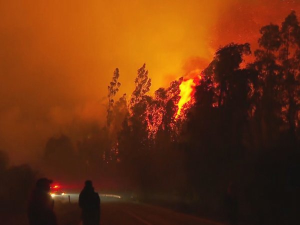 Fuertes vientos complican el combate de las llamas en Traiguén, región del Biobío. Hasta el momento el siniestro ha consumido más de mil hectáreas en el sector.