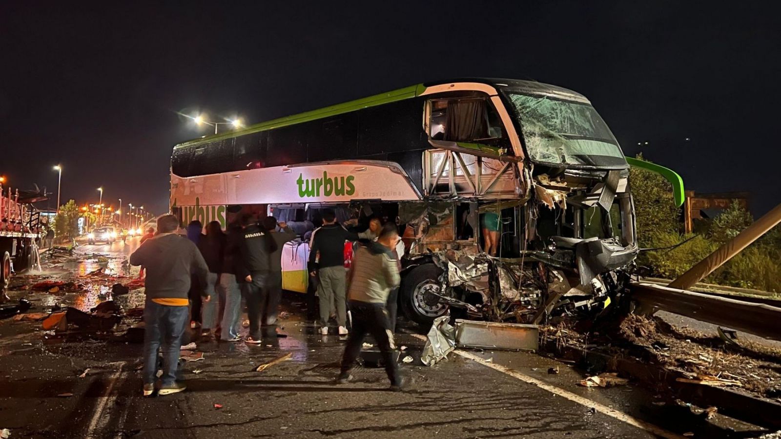 Durante la madrugada de este miércoles, se registró un violento accidente de tránsito entre un camión y un bus con pasajeros a bordo en el kilómetro 701 de la Ruta 5 Sur en la comuna de Pitrufquén, región de la Araucanía.