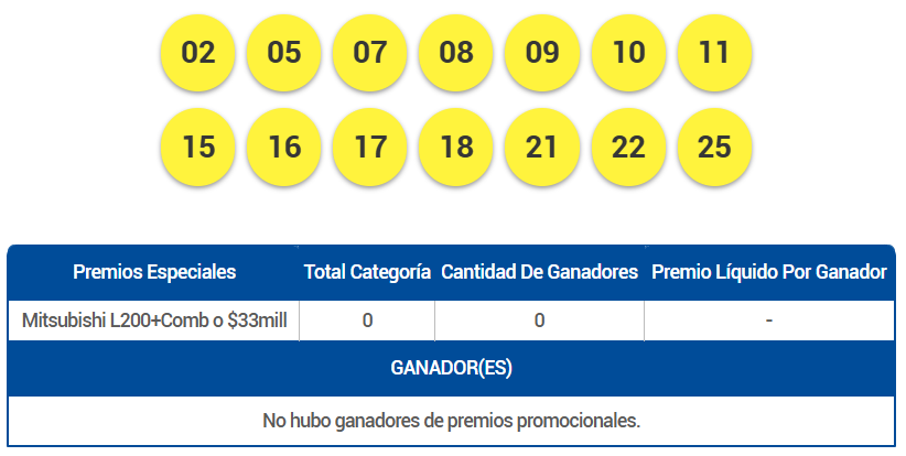 Otros resultados de Kino de Lotería