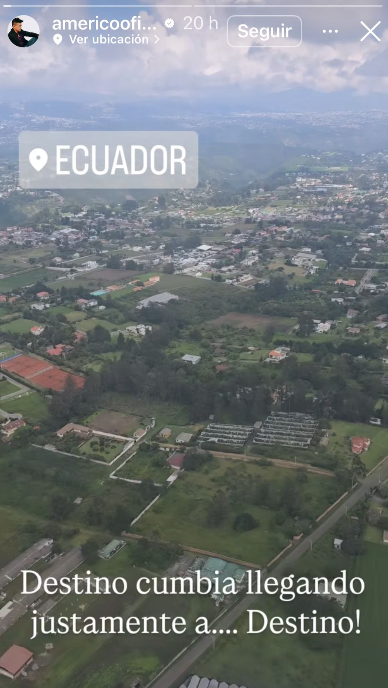 A través de su historia en Instagram, Américo publicó una fotografía, donde aparece el paisaje de Ecuador, mientras que él está al interior de un avión.