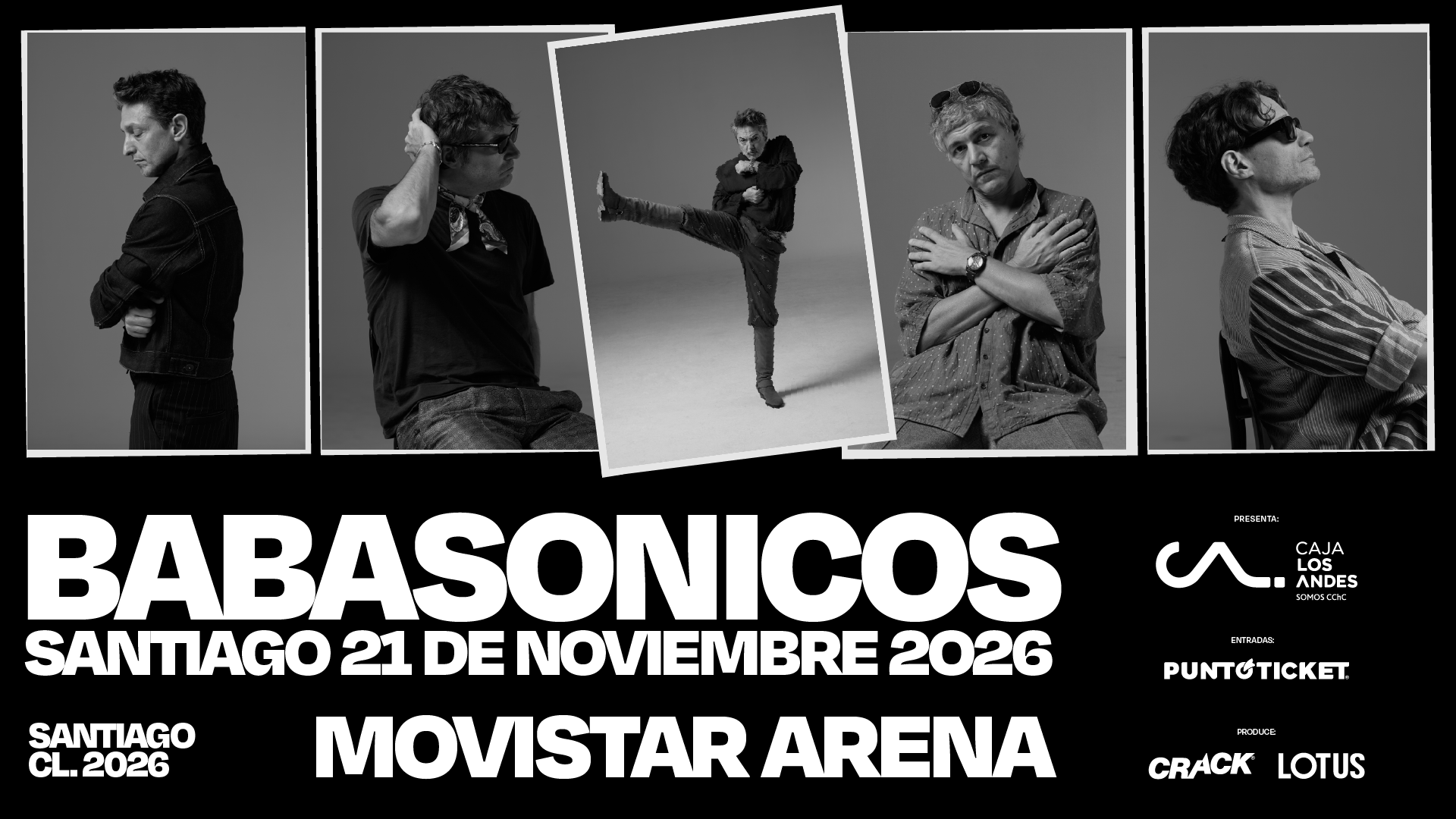 Babasónicos anunció su regreso a Chile con un show en el Movistar Arena, fijado para el próximo sábado 21 de noviembre de 2026, en el marco de su nuevo espectáculo "Cuerpos".