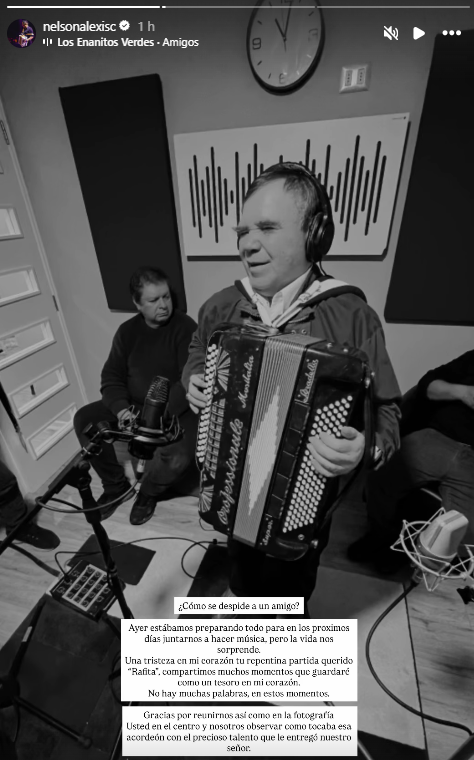 Ante la noticia, el director del grupo "Zúmbale Primo", compartió una emotiva historia donde dijo lo siguiente: "Ayer estábamos preparando todo para en los próximos días juntarnos a hacer música, pero la vida nos sorprendió. Una tristeza en mi corazón, tu repentina partida, querido "Rafita", compartimos muchos momentos que guardaré como un tesoro en mi corazón".
