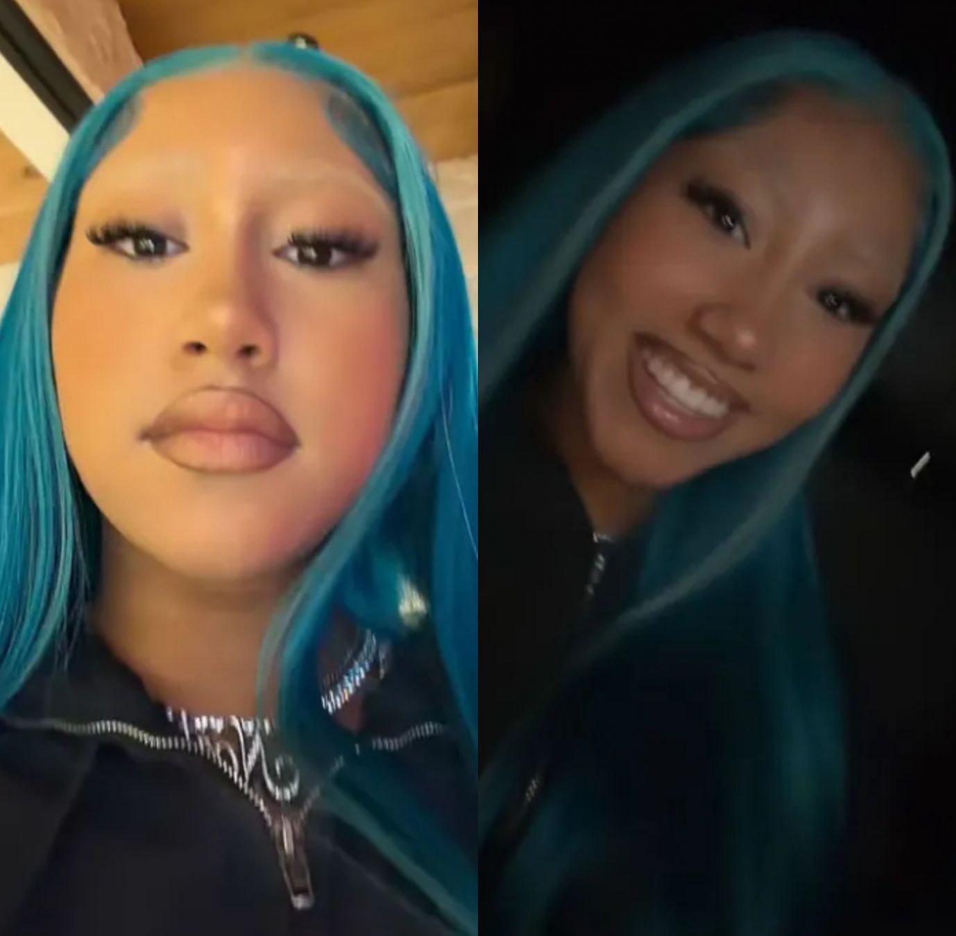 Sumado a lo anterior, la niña, que desde hace un tiempo luce su distintivo cabello en tono azul eléctrico, terminó de combinar su look rupturista con un conjunto total black.