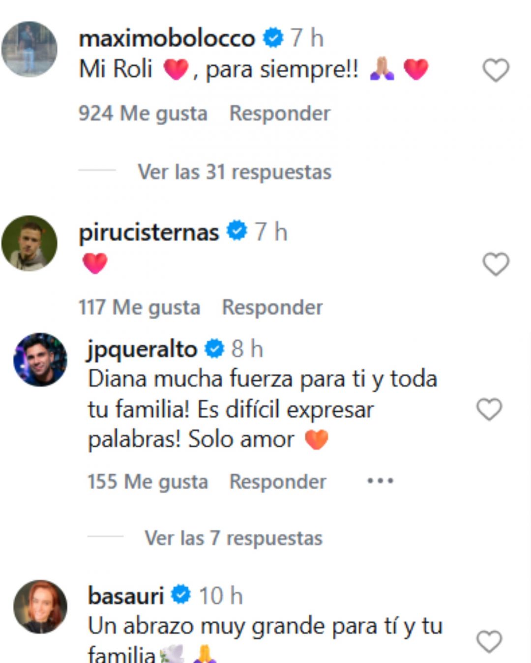 “Un abrazo para ustedes. Es inevitable el dolor de la pérdida pero sin duda prima la alegría de haber tenido ese portento de mamá en sus vidas.Abrazos”, agregóFuentes.