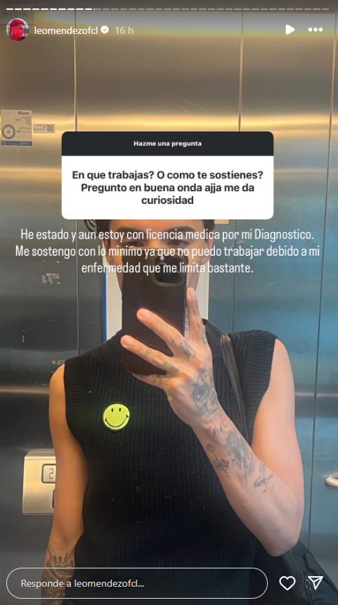 "He estado y aún estoy con licencia médica por mi diagnóstico. Me sostengo con lo mínimo, ya que no puedo trabajar debido a mi enfermedad que me limita bastante", respondió.