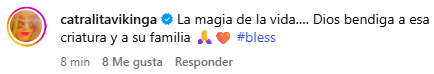 "Qué niña tan preciosa", "¡Felicidades! No tengo ni una duda de que serán unos padres maravillosos" y "La magia de la vida…. Dios bendiga a esa criatura y a su familia", fueron sólo algunos de los comentarios.