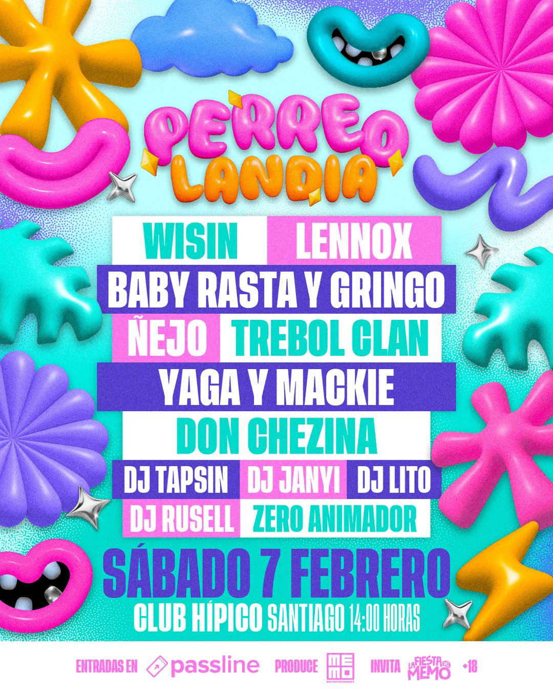 Perreolandia es mucho más que un festival: es una experiencia con identidad propia, un punto de reencuentro para quienes crecieron con los clásicos del reggaetón. Es el espacio perfecto para la generación del perreo. Con un line up compuesto por verdaderas leyendas, Perreolandia 2026 se posiciona como el evento imperdible del próximo verano. El 7 de febrero, el perreo clásico se toma Santiago por completo.