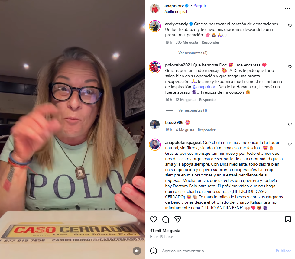 "A Dios le pido que todo salga bien en su operación y que tenga una pronta recuperación 🙏", fue uno de los tantos comentarios de apoyo hacia la doctora Ana María Polo.