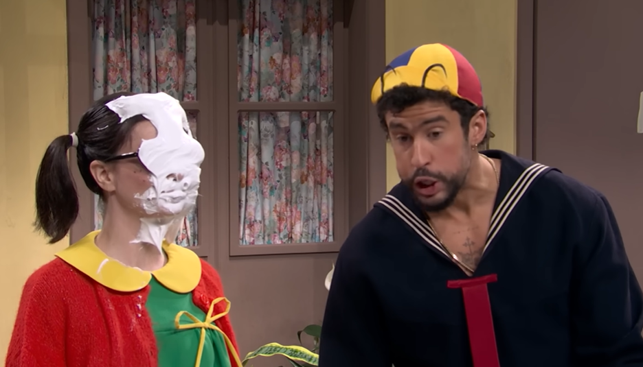 Uno de los momentos más comentados fue una inesperada parodia de "El Chavo del 8", donde el artista interpretó a Quico en una peculiar versión estadounidense del clásico creado por Roberto Gómez Bolaños. Con una escenografía muy similar a la original, el sketch reunió a Marcello Hernández como El Chavo, Sarah Sherman como La Chilindrina y Andrew Dismuke como Don Ramón.